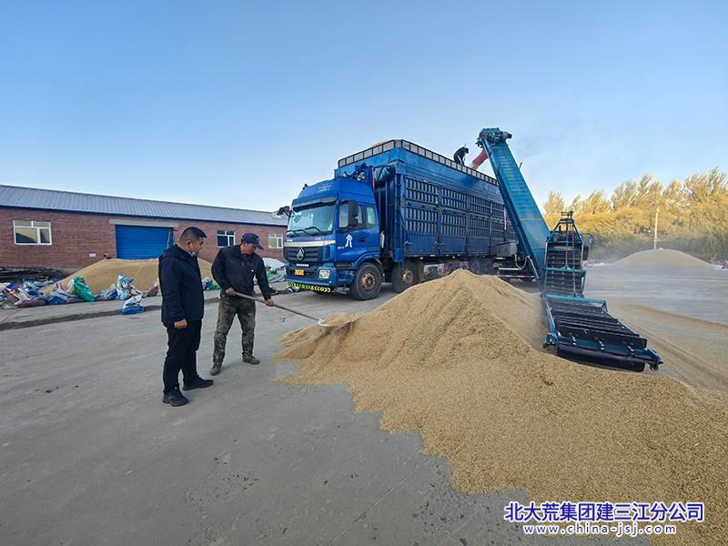 笔者在第三管理区售粮现场看到,运粮输送设备高速运转,将粮食装入运粮车。种植户尚积胜介绍,今年种植的圆粒水稻,收获的水稻水分含量在14.6%,以1.29元一斤的价格顺利售出,实现了稻谷产量与销售收益的双重提升。