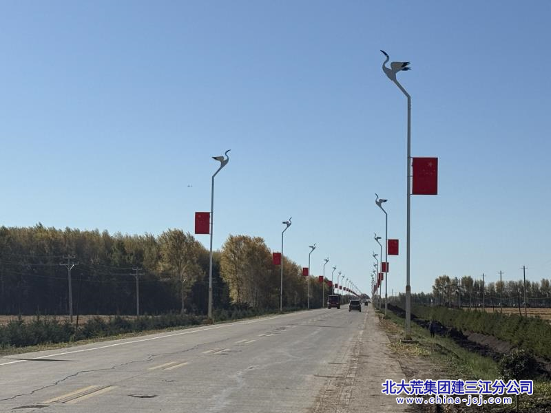 洪河农场新灯焕亮街巷 国旗高扬绘就“中国红”