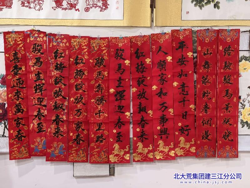活动现场,退休干部、职工挥毫泼墨,笔走游龙,经过近半天的紧张忙碌,“骏马奔腾千里路,红梅绽放万家春”“马蹄踏碎旧年雪,喜气迎来万家春”等一幅幅大红对联、一张张形态各异的福字便跃然纸上。退休干部、职工把心中的美好愿景倾注于笔端,书写着喜迎新春的喜悦和对美好未来的无限向往。