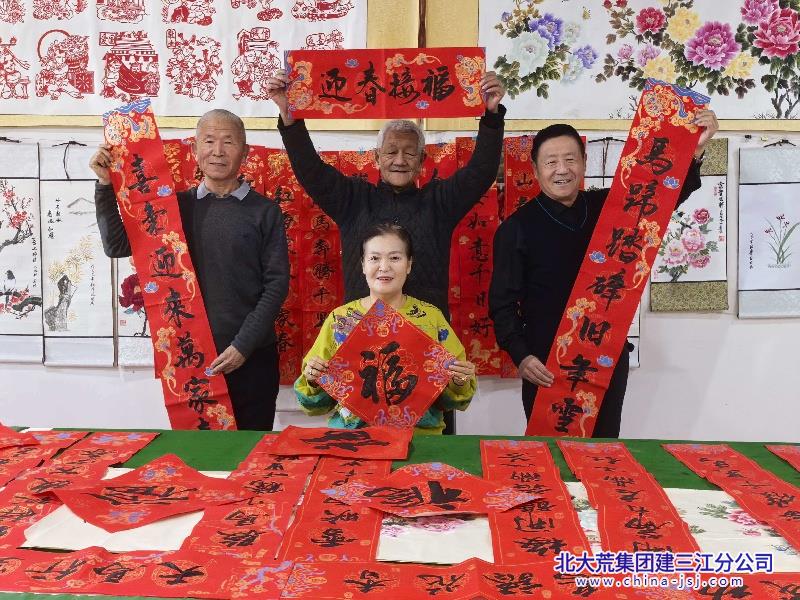 本网讯(李艳雪 吕宗徽)新春佳节到来之际,勤得利农场爱好书法的退休干部、职工齐聚老年活动中心,开展“迎新春.写春联.送祝福”活动。