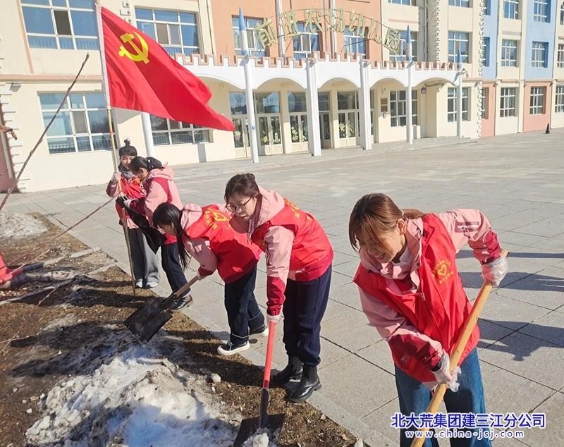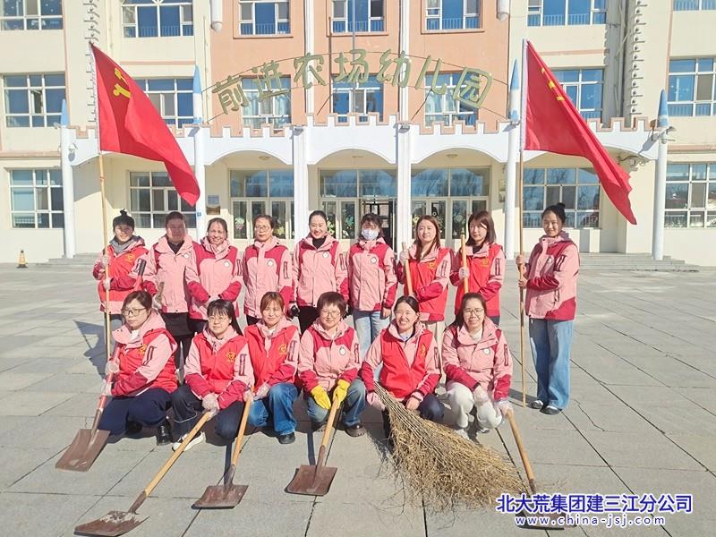 前进农场幼儿园开展“党建引领净环境 实干担当护童心”主题党日活动