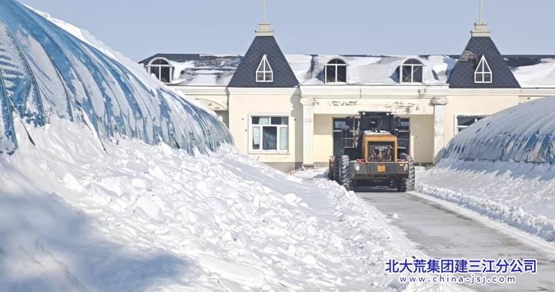 清雪扣棚“抢时提速”,筑牢育秧基础。早清雪、快扣棚,才能抢积温、提地温,为育壮秧打牢基础。在前锋农场育秧大棚基地里,种植户们正抢抓晴好天气清理棚顶积雪,现场人机协同,一派繁忙热闹景象。