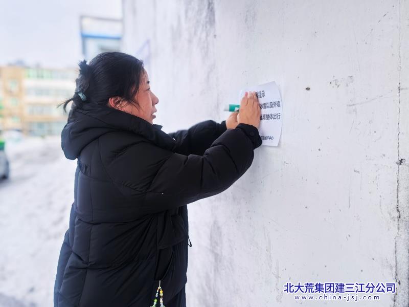 本网讯(刘艳秋)为切实防范冬季气温波动引发楼顶冰雪松动、外墙皮脱落等安全隐患,避免造成人身伤害和财产损失,2月26日,青龙山农场组织开展全覆盖式安全温馨提示张贴工作,全力保障辖区居民出行安全。
