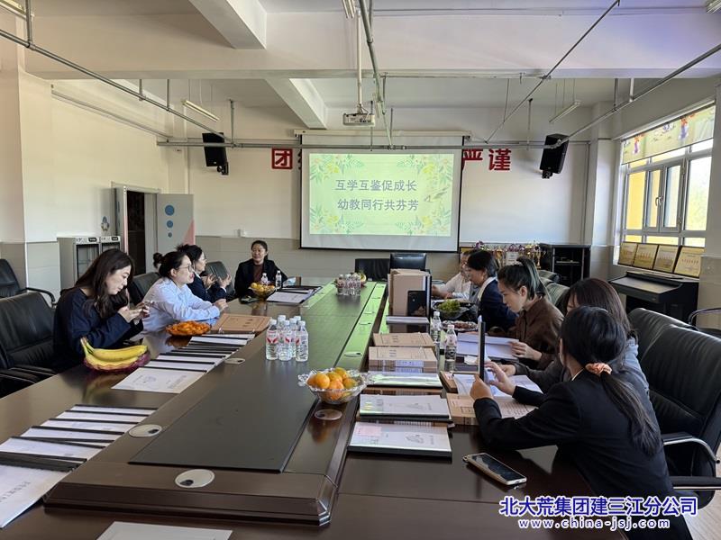 观摩结束后,双方齐聚会议室进行了热烈的研讨交流。勤得利农场幼儿园的教务主任重点分享了本园在北大荒精神进校园、红色文化传承、阅读活动等课程特色建设方面的探索与实践经验。姐妹们园的教师们就观摩中的所见所感踊跃发言,提出了许多有价值的问题,双方围绕“如何更有效地支持幼儿的深度学习”、“区域活动中教师的观察与介入策略”、“家园共育的新模式”等共性话题展开了深度对话。讨论现场思想激荡,气氛融洽,充满了专业探究的学术氛围。