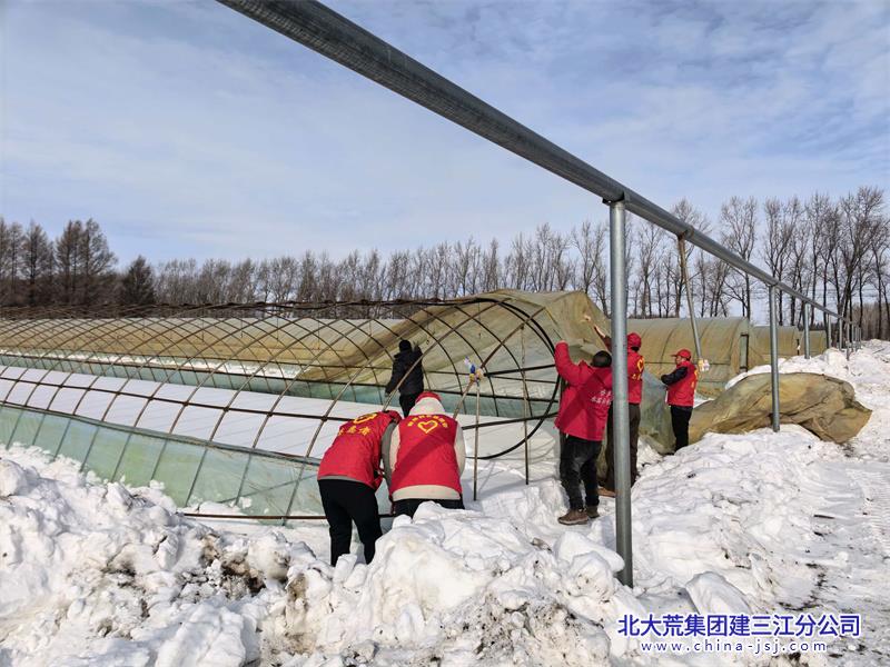 在各管理区,机械轰鸣声此起彼伏,人影穿梭于雪野之间,一幅热火朝天的备耕画卷正徐徐展开。与往年不同的是,今年的清雪扣棚现场,不仅有忙碌的种植户外,还多了一支身着红马甲、手持测量工具、肩扛技术手册的“特殊队伍”——他们正是由农场各管理区骨干技术人员组成的“党员技术志愿服务队”。
