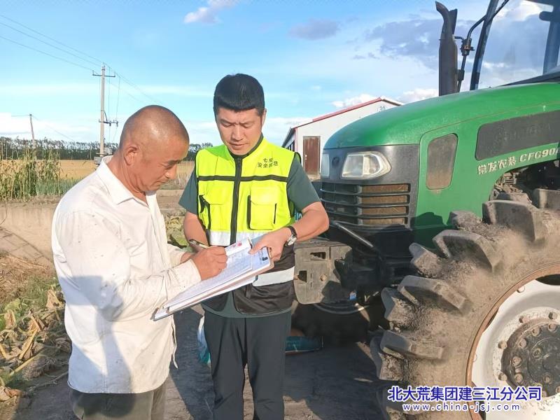 为打通秋收农机安全监管和服务“最后一公里”,第七管理区组建了一支由技术骨干、党员、志愿者、安全员组成的农机安全巡查队,采取分片包户、每日巡查机制,深入田间地头、农机停放点、晒场开展动态农机安全隐患排查。巡查中,队员们不仅对农机的照明、反光标识、安全防护装置以及收获机械灭火设备、驾驶员安全操作等进行逐一检查,还为农机手发放《秋收农机安全操作手册》,针对发现的未安装反光标识、灭火器过期等23处隐患,现场监督整改,确保隐患“当天发现、当天清零”。同时,在辖区重要路口、明显位置安插安全刀旗30余面,悬挂条幅3处,为营造秋收农机安全营造良好氛围。 此外,这个管理区还创新宣传方式,利用抖音、微信视频号、田间大喇叭、流动宣传车等载体,每日推送农机安全知识、天气预警信息及作业禁忌提醒,切实将农机安全延伸到秋收生产的每一个环节。