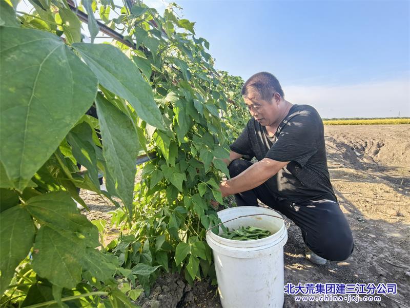 本网讯(刘晓明)近日,在七星农场第十二管理区的育秧大棚内,种植户杨喜艳正忙着采摘鲜嫩的豆角,翠绿饱满的豆荚挂满枝头,一派丰收忙碌的景象。“育秧结束后接着种豆角,一份土地能有双份收入,日子越过越有奔头!”杨艳的话语里满是喜悦。