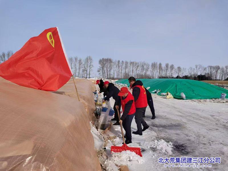 连日来,浓江农场第一管理区组成护粮服务队,指导种植户压紧盖实苫布,并提供水稻测水服务,防止风雪天气造...
