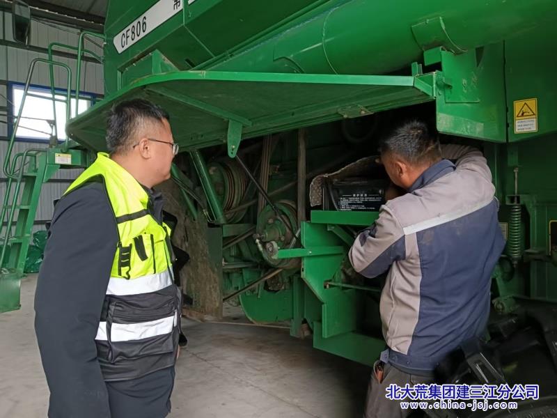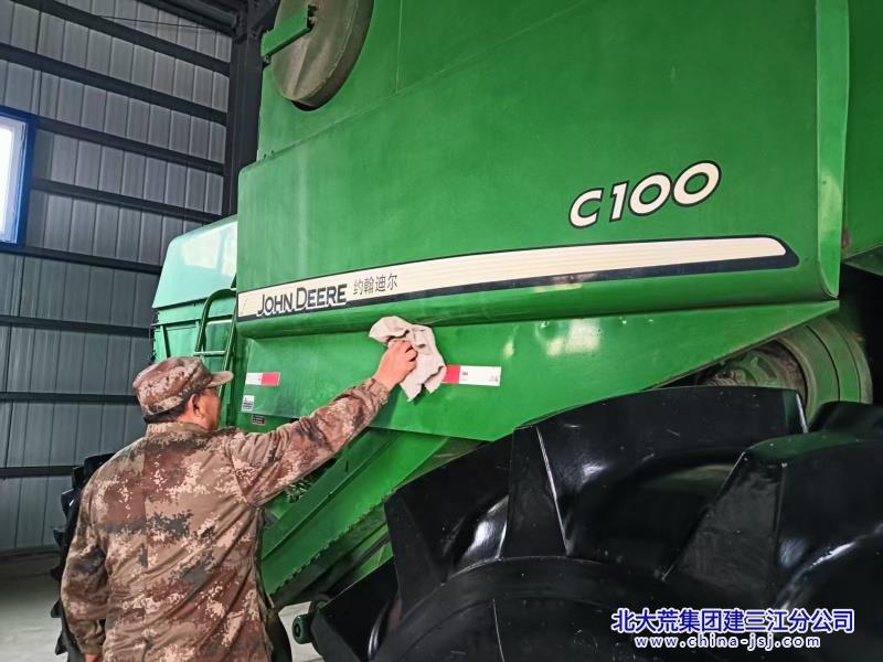 在七星第七管理区的农机库房现场,工作人员按照“一机一档、逐项核验”的标准,对多台清洗后的联合收割机进行入库体检,从检查发动机、变速箱等核心部件的运行状态到更换磨损零件,再对机身进行深度擦洗、除锈、涂油,防止冬季低温导致金属部件锈蚀,最后调试液压系统、电气线路,指导工作人员做好机具牢固支垫,并督促机主及时拆卸、保养电瓶,确保关键部位无故障和隐患。同时,这个管理区还制定了严格的农业机械入场入库规范,要求所有农机具入库后按类型、型号分区停放,大型机具之间预留安全通道,指定更夫做好每日库房防火、防盗等设施巡查,为收获机械安全、高质量入场入库夯实坚实基础。