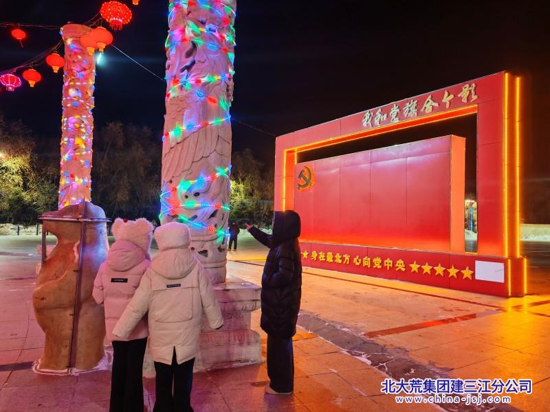 走进这个农场的文化活动广场,红彤彤的灯笼高高挂起,层层叠叠汇成一片温暖的灯海;道路两旁,树枝上缠绕着暖黄色的串灯沿着街道蜿蜒伸展。今年彩灯布置以改善民生为宗旨,以“奋进青龙山”为主题,将传统元素与现代光影巧妙交融,既保留了大红灯笼、中国结等经典元素,又融入了时尚的造型灯光与节能的LED灯串,吸引了不少员工携家人驻足拍照,记录下这温馨美好的时刻。
