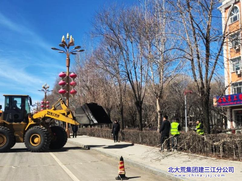作业中,农场绿化工作人员分工明确、协同作战,一方面,安排专人在作业区域设置安全警示,疏导过往行人和车辆,确保作业安全。另一方面,操作装载机对倾斜严重、存在倒伏风险的树木进行扶正、加固,对已经折断、无法存活的枝干进行切割清理,同时,对绿化带内堆积的断枝、残叶进行全面清运,彻底消除安全隐患,以最快速度完成了险情处置,及时恢复绿化带的整洁与安全。